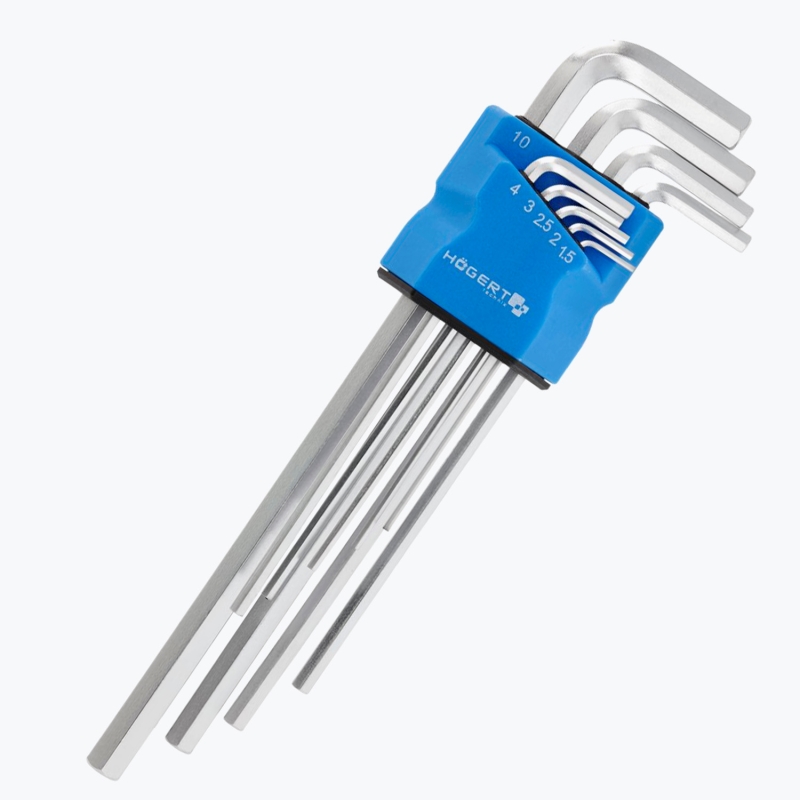 Set format din 9 chei hexagonale de precizie, extra lungi, special concepute pentru slăbirea și strângerea