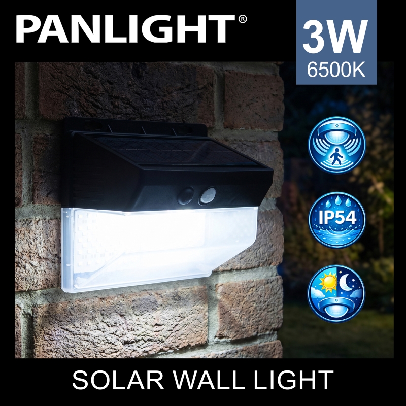 Настенный светильник 3 W на солн. батарее с датч. движ., 6500K, 340lm, IP65, черный PL-SWL-3W-WH PANLIGHT